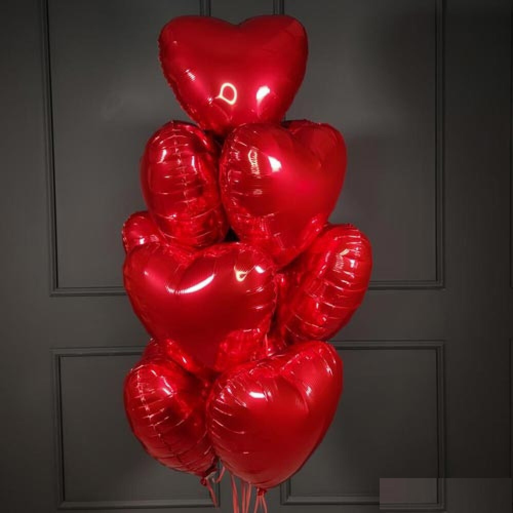Композиция красных сердец 10 шт, цвет можно поменять.Размер шара 45 см