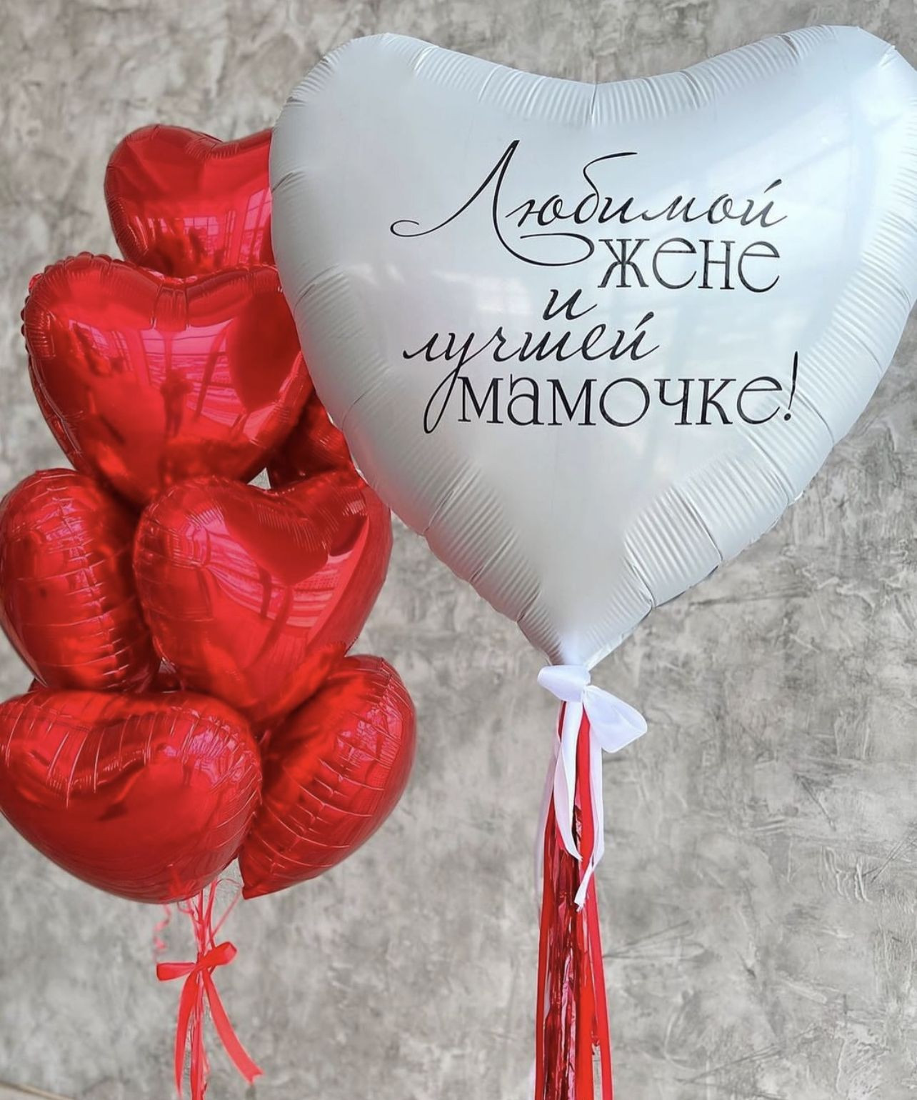 Набор из шаров: сердце 86 см с индивидуальной надписью и фонтан из 7 шаров