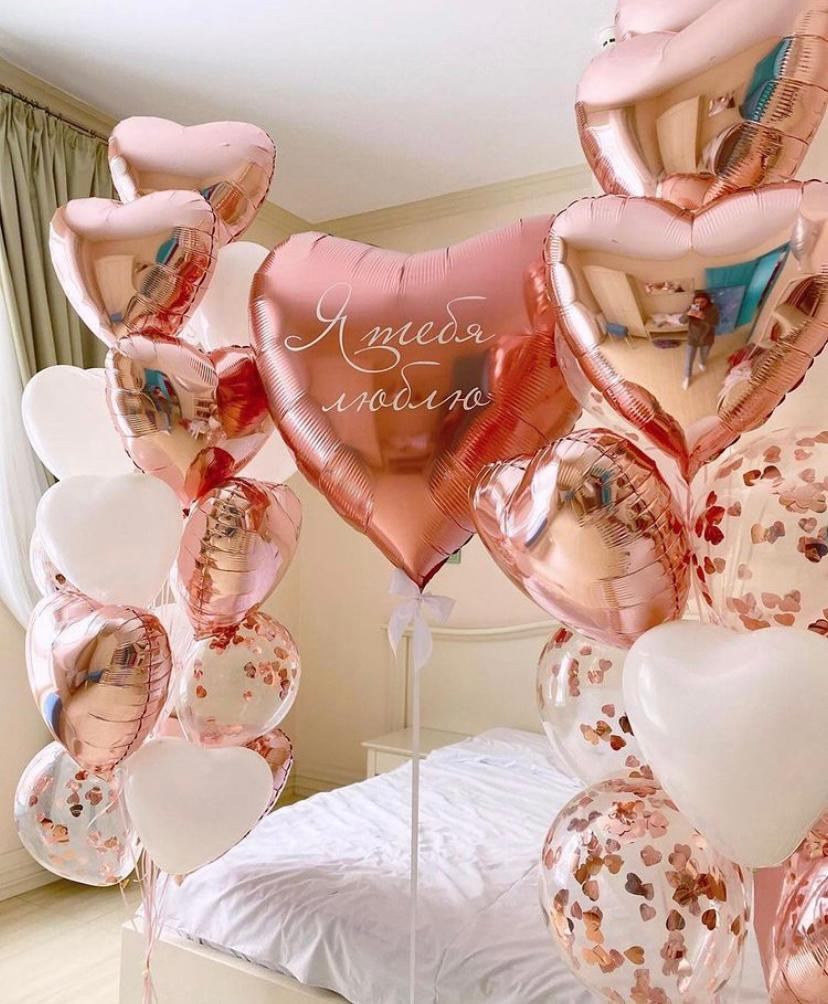 Фонтан из фольгированных сердец и латексных шаров с конфетти